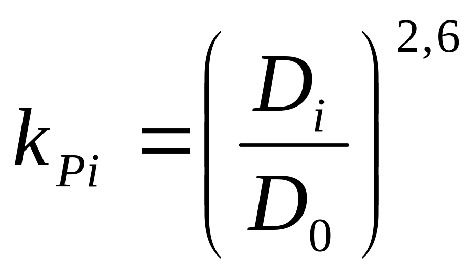 Численные значения kР для любых D/D0 приведены в таблице 1 (D и D0 – внутренние диаметры). Если D/D0 > 1, то вычисляется величина, обратная kР (1/kP), по обратному отношению диаметров (D0/D).