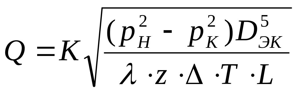 При использовании смешанной системы единиц D в м, Т в К, производительность в млн м3/сут, давление в МПа и длина в км, коэффициент К будет учитывать помимо величин, указанных выше, еще и переходные коэффициенты, и его значение составит 105,087.