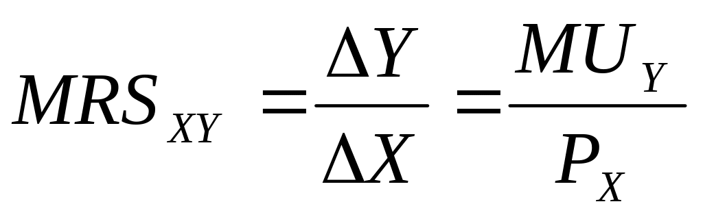 Предельная норма замещения товаром Х товара Y (MRSXY) – количество товара Y, которое потребитель готов обменять на дополнительную единицу товара X, сохраняя прежний уровень полезности: