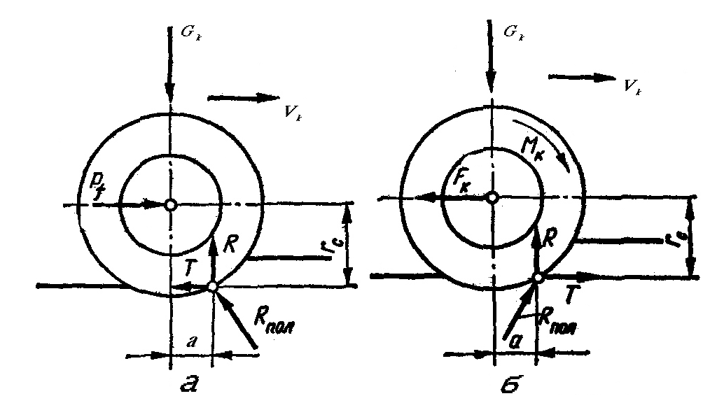 Рис.4.5 Силы, действующие на колесо: а – на ведомое; б – на ведущее.
