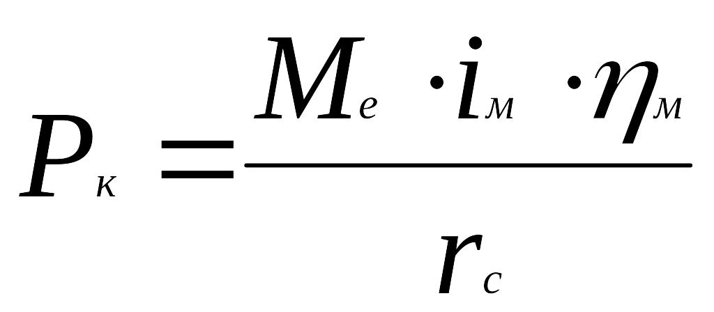 В общих расчетах пневмоколесного ходового оборудования движущую силу МЗР определяют по крутящему моменту движителя Мк, связанному с крутящим моментом двигателя Ме уравнением: