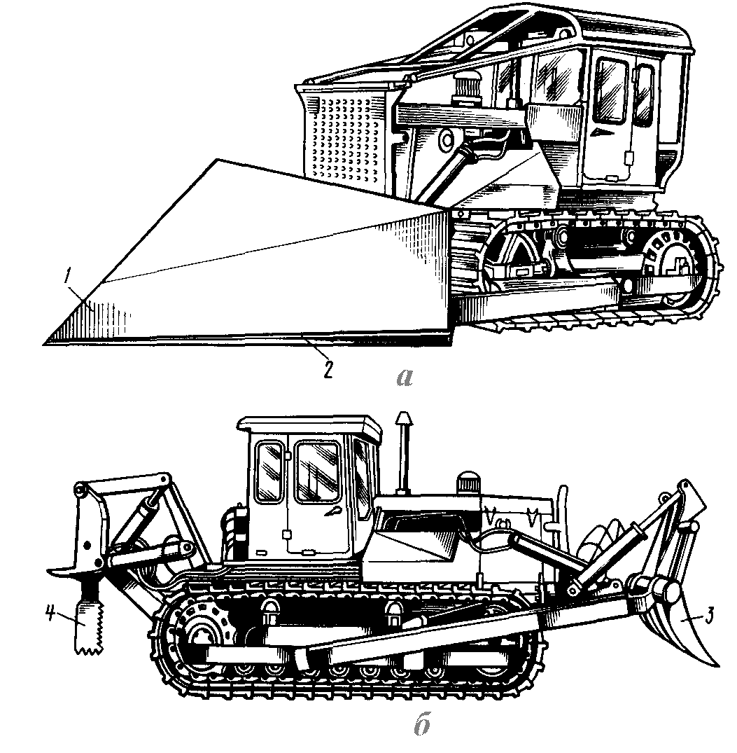 Рис. 8.6 Машины для подготовительных работ: а – кусторез; б – корчеватель – собиратель.