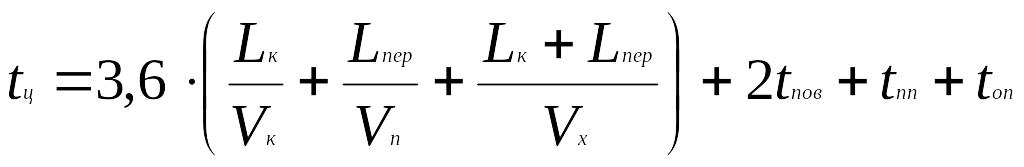 где Lк и Lпер – длина участков резания и перемещения (несовмещенного с копанием), м; Vк, Vп, Vх – скорости рабочего, транспортного и возвратного ходов, км/ч; tпов – время необходимое на один разворот, с; tпп – время на переключение передач, с; tоп – время на опускание и подъем отвала, с.
