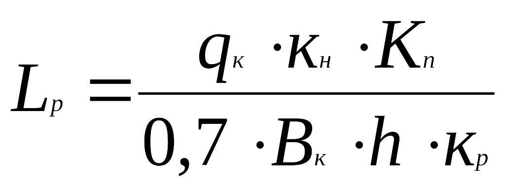 0,7 – коэффициент, учитывающий неравномерность стружки; Кп – коэффициент потери грунта при образовании призмы волочения и боковых валиков Кп=1,2…1,6; Вк – длина режущей кромки, м;