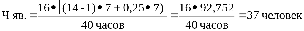 Явочная численность представляет собой количество работников, которые должны являться на работу каждый день, чтобы обеспечить нормальную работу магазина, заполнение всех предусмотренных рабочих мест в течение всего времени работы магазина с учетом затрат времени на осуществление подготовительно-заключительных операций (выкладка товаров, подсчет выручки и т.д.).