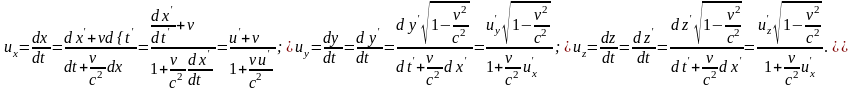 Возьмем дифференциалы от преобразований Лоренца для координат и времени:
