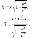 Иногда нужны обратные преобразования Лоренца (из штрихованной в нештрихованную). Для этого нужно заменить штрихованные величины на нештрихованные и v на –v.
