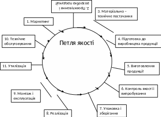 Система управління якістю розробляється з урахуванням конкретної діяльності організації, але за своєю суттю, вона має охоплювати всі стадії життєвого циклу продукції/послуги. В основу такого управління закладається «петля якості», яка є методологічною базою міжнародних стандартів ISO. У відповідності з цими стандартами життєвий цикл самої продукції визначається як «петля якості» і складається з 11 етапів: