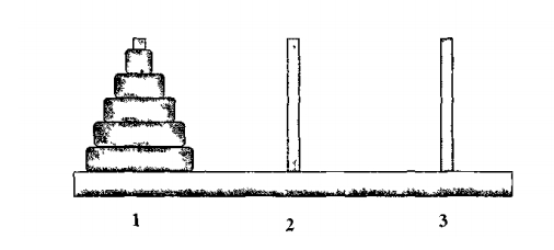 Задача о Ханойской башне: переместить 5 дисков со стержня 1 на стержень 3, используя промежуточный стержень 2 и соблюдая законы: