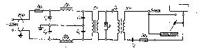 Трехфазный сварочный аппарат ЗСТ конструкции проф.Н.С. Силунова имеет мощность 45 кВ-А, вторичное напряжение - 60 В, сварочный ток - 450 А. Заводом "Электрик" для ручной сварки выпущены трехфазные сварочные аппараты ТТС-400 на 400 А, состоящие из двух спаренных трансформаторов СТН в едином корпусе. Схема питания трехфазной сварочной дуги приведена на рис. 8. Для автоматической сварки заводом "Электрик" выпущены трехфазные сварочные аппараты ТТСД-1000 на 1000 А, состоящие из двух спаренных трансформаторов ТСД-1000-4. Трехфазные сварочные аппараты обеспечивают высокую производительность, экономию электроэнергии (к. п. д. достигает 0,9) и равномерную загрузку фаз сети при высоком коэффициенте мощности (соs φ= 0,8), однако ввиду сложности сварочного оборудования и трудностей при сварке потолочных вертикальных швов применяются ограниченно.