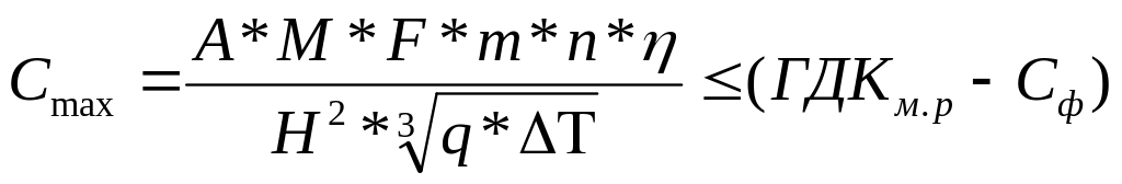 W0 - середня швидкість виходу газоповітряної суміші з отвору джерела викиду, м/с; D - діаметр отвору джерела викиду, м; H - висота джерела викиду над рівнем землі, м; ∆Т - різниця між температурою газоповітряної суміші Tг, що викидається, та температурою навколишнього повітря Tп, C Викиди для яких f>=100 належать до холодних, при f<100 викиди відносять до нагрітих |