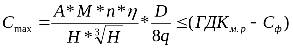 Значення максимальної приземної концентрації шкідливих речовин від поодинокого джерела з круглим отвором на відстані Xm від джерела викиду |