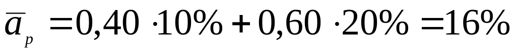 Ожидаемая доходность акций А, которые образуют 40% стоимости портфеля, составляет 10%, а акций В, образующих оставшиеся 60% портфеля, - 20%. Определить ожидаемую доходность портфеля.