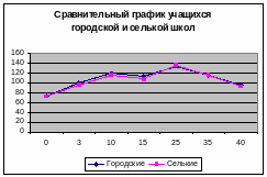 Анализируя данный график, можно отметить, что физиологическая кривая учащихся ЫКСШ №1 более плавная, чем физиологическая кривая учащихся СШ №14 г. Якутска, что свидетельствует о том, что сельские дети более адаптированы к физическим нагрузкам. То есть в процессе занятий физической культурой пульс у сельских детей более или менее равномерный и резкие скачки, как таковые, отсутствуют. На физиологической кривой городских детей же имеет место резкие перепады в пульсе со 100 ударов в начале занятия до 119 ударов в первой четверти, затем спад до 113 ударов на 15 минуте. (т.е. за 5 минут пульс снизился на 6 ударов) Далее, через 10 минут (через 25минут после начала занятия) пульс подскочил до 135 ударов, далее идет равномерный спад, но концу занятия вновь резкий спад – за 5 минут – до 21 удара в минуту.