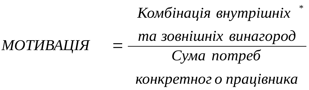 На нашу думку, загальна ефективнiсть мотивацiї до працi може бути представлена так: