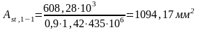 Требуемая площадь сечения арматуры в расчетных сечениях назначаем по максимальному значению: