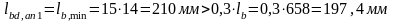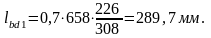 Сечение Б – Б. В сечении обрывается стержень 14 мм класса S500. Требуемая площадь сечения арматуры As,red = 3,08 см2 (214), принятая площадь сечения арматуры As,prov = 4,619 см2 (214+114). мм. Длина анкеровки обрываемых стержней в соответствии с формулой (3.15):