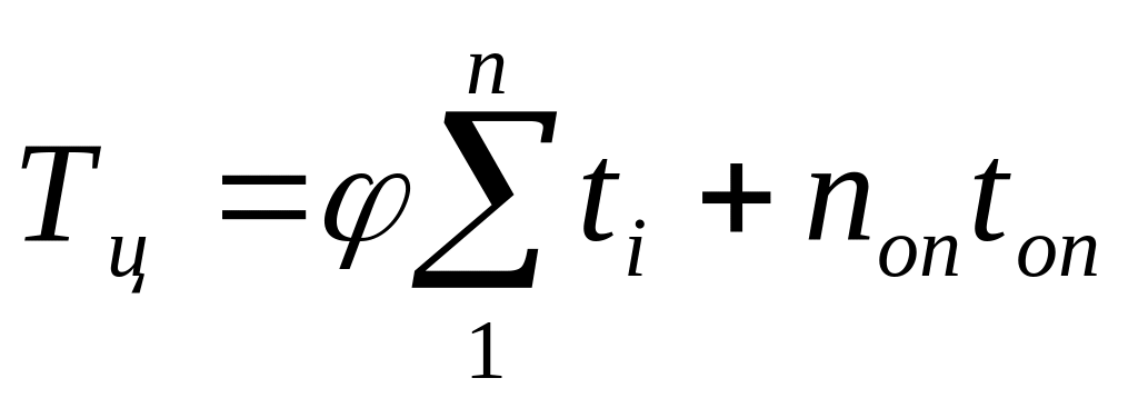 Час робочого циклу визначається експериментально (хронометражним вимірюванням) або поєднанням хронометражних спостережень з розрахунками окремих операцій за відомими залежностями. У загальному вигляді він визначається таким чином: