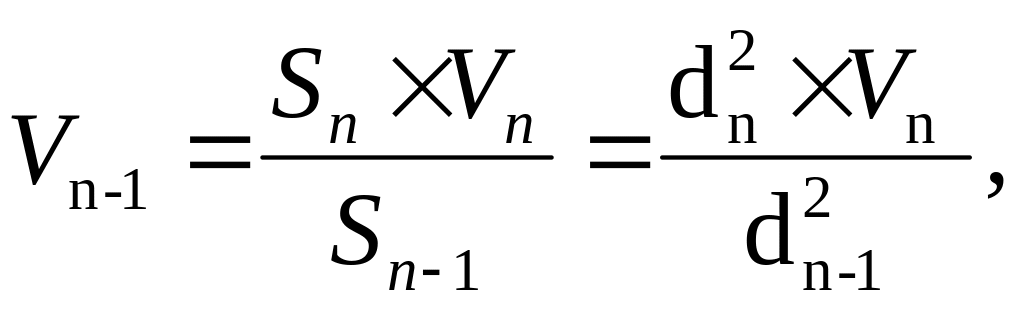 Швидкість дроту на виході із останньої волоки с вихідної величини. Для визначення швидкостей кожного із попередніх барабанів скористаємося законом рівності об’ємів металу, що протягнемо через будь-яку волоку багатократного волочильного стану за рівні проміжки часу: