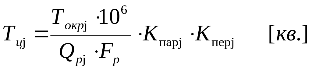 где Токрj - трудоемкость ОКР на j-м этапе, млн. чел.-час; Qрj - количество работающих ОКБ, задействованных на выполнение j-го этапа разработки данного двигателя, чел. (рассчитывается по формуле 2.8); Fд - квартальный фонд времени работы одного работающего, ч/кв; Кпарj и Кперj - коэффициенты, характеризующие степень параллельности и возможные перерывы в работах по разрабатываемому двигателю на j-м этапе.