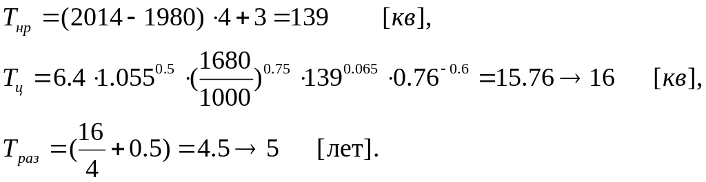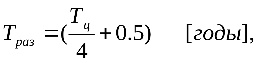 Длительность цикла разработки в годах определяется по формуле: