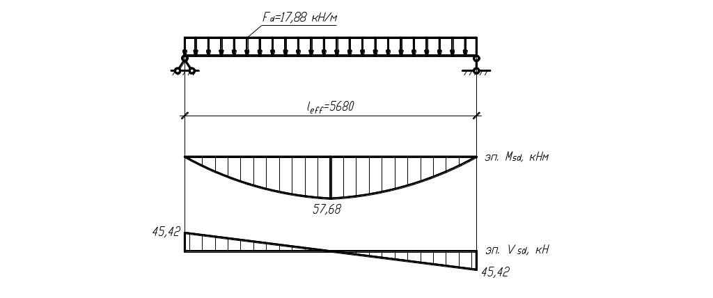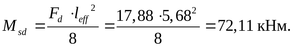 Максимальный изгибающий момент от полной расчётной нагрузки: