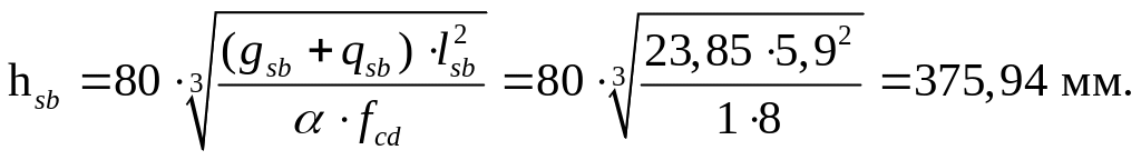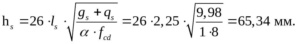 Минимальная толщина монолитной плиты перекрытия для гражданских зданий составляет 70 мм. Окончательно принимаем hs = 80 мм.