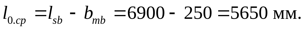 Расчетный пролет второстепенной балки для средних пролетов балки: