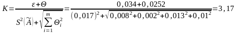 Коэффициент K - коэффициент, зависящий от соотношения случайной и неисключенной систематической погрешностей вычисляют по эмпирической формуле: