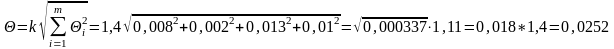 Границы неисключенной систематической погрешности Θ результата измерения вычисляют путем построения композиции всех неисключенных систематических погрешностей. Эти границы (без учета знака) можно вычислить с использованием зависимости: