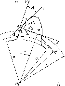 В соответствии с формулами (5.51) находят положение точки М на переходной кривой профиля зуба, сопряженной с точкой М на переходной кривой профиля рейки.