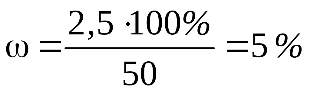 Приклад 1. У 50 г розчину міститься 2,5 г калій гідроксиду KОН. Обчисліть масову частку KОН.