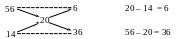 Кожна різниця показує масові частки того розчину, масова частка якого написана на тій самій горизонтальній стрічці. Отже, для приготування 20%-го розчину необхідно взяти 6 масових частин 56 %-го і 36 масових частин 14 %-го розчину.