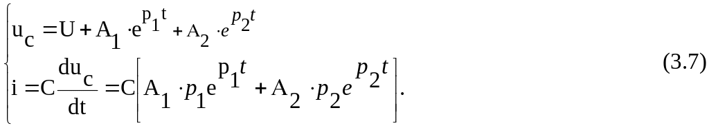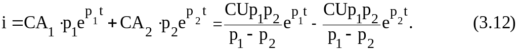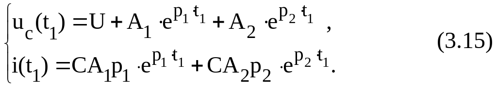 Таким образом, uc(t) и i(t) описываются системой (3.7) для апериодического режима, где А1 и А2 определяются из (3.16) и (3.17).