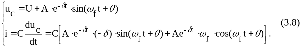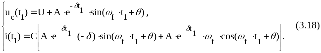 В случае колебательного режима uc(t) и i(t) описываются системой (3.8), в которой и А рассчитываются с помощью (3.19), (3.20).