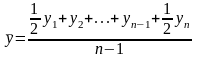 где y1, y2, … yn – уровни моментного ряда динамики (1-й, 2-й, ... n-й);