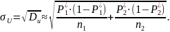 В качестве критерия будем использовать случайную величину U = P1* – P2*, которая также имеет приближенно нормальное распределение с математическим ожиданием mU =0 и дисперсией:
