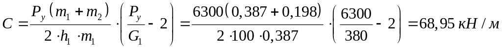 Виходячи з наперед заданої сили удару об підвісну роликоопору, визначаємо необхідну жорсткість пружної системи.