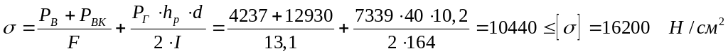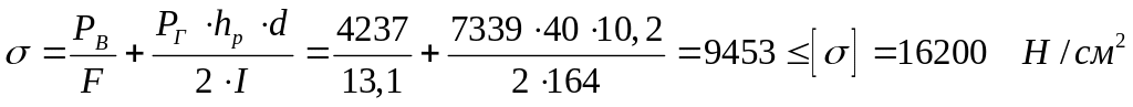 Проведемо розрахунок для труби діаметром d = 102 мм з товщиною стінки 4,5 мм: І = І64,0 см4 ; F = 13,1 см3.