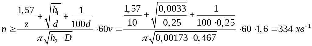D - діаметр барабана з урахуванням товщини стрічки D = 46,7 см;