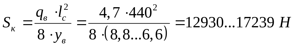 На крайні стійки секції (Рис. 7) крім того діє зусилля РВК від натягу в канатах, які відхиляються для закріплення:
