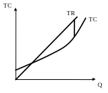 Оптимальный уровень выпуска может быть найден путём сопоставления предельных издержек и предельного дохода. (поскольку фирма является «прайс-тейкером», предельный доход равен цене.) Прибыль увеличивается вплоть до той точки, пока растущие предельные издержки не начинают превосходить предельный доход; после этой точки прибыль уменьшается.