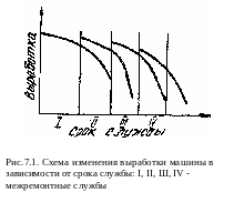 Из практики хорошо известно, что по мере износа машины ее выработка снижается. Имеется в виду не номинальная часовая производительность машины, находящейся в исправном состоянии, а выработка за относительно большой календарный промежуток времени (месяц, год, несколько лет) в разные периоды срока службы машины.