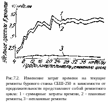 Кроме сокращения продолжительности межремонтных периодов и ремонтных циклов, на повышение простоев машины оказывает влияние также возрастание по мере ее износа объема плановых, неплановых ремонтов и технического обслуживания.