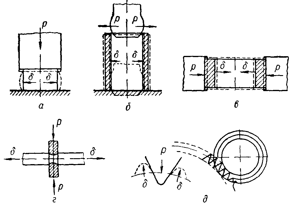Кеңіту (9.2-сурет, б) бөлшектің биіктігін сақтай отырып немесе азғана өзгерте оның сыртқы өлшемдерін үлкейту үшін қолданылады. Бұл кезде әсер етуші күш Р бағыты деформациямен бағыттас, металл ортадан сыртқы жиекке ығыстырылады.