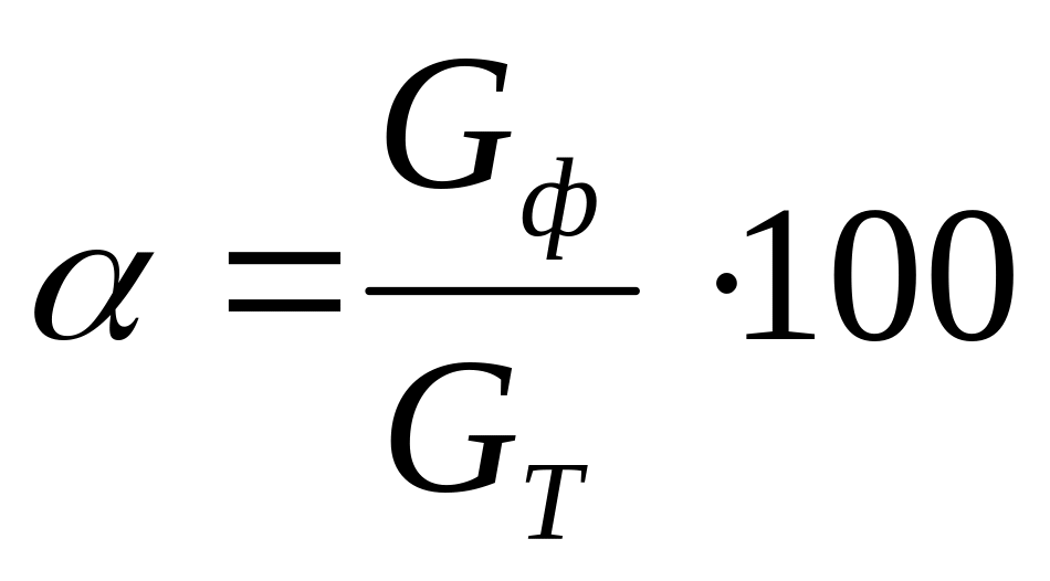 Іс жүзіндегі жабысатын зат мөлшері GФ теориялықтан GT аз.