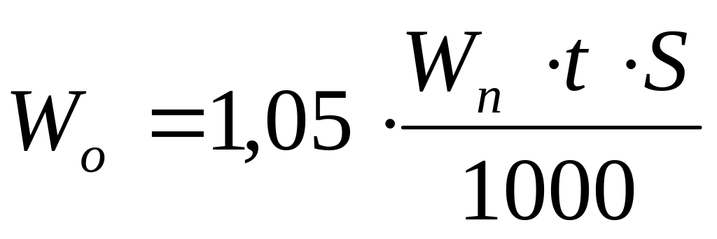 де Wn – питомі витрати електроенергії на освітлення рпи нормі 15 Вт·год на м2;