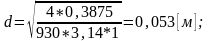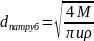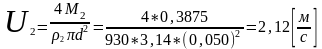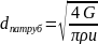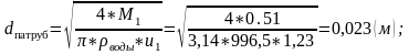 Формула для расчета искомого диаметра патрубков для входа и выхода теплоносителей (в м)