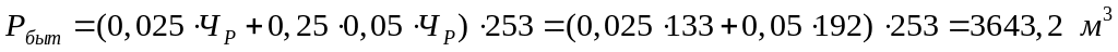 Расход воды на бытовые и хозяйственные нужды определяется исходя из следующих норм: 0,025 м3 на одного работающего в смену и 0,05 м3 на одного работника, пользующегося душем (20% от всех работающих).