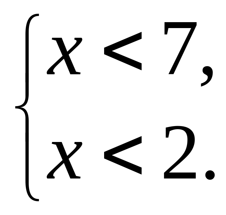А) 2 <x<7; Б) x<7; В) x<2; Г) x 2.